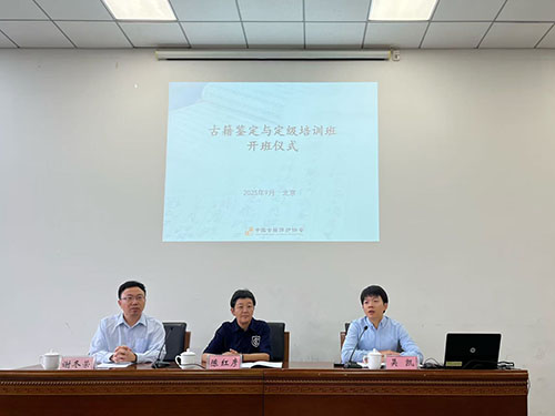 2025年9月14日至21日,由中国古籍保护协会主办,协会古籍鉴定专业委员会、民间古籍收藏工作委员会、国家图书馆古籍馆联合承办的“古籍鉴定与定级培训班”在国家图书馆成功举办。9月14日,中国古籍保护协会古籍鉴定专业委员会副主任委员、国家图书馆古籍馆原馆长陈红彦,国家图书馆《永乐大典》研究中心主任、古籍馆副馆长谢冬荣,中国古籍保护协会秘书长吴凯出席开班仪式。40名来自全国各地图书馆、博物馆、档案馆、高校及民间古籍收藏单位的学员参加了本次培训。培训班以“小班教学”为特色,聚焦古籍鉴定与定级核心技能,旨在提升从业人员专业素养,推动古籍保护从专业领域向社会普及。