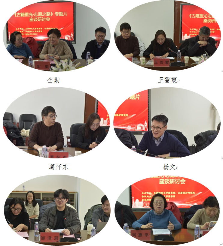 为深入探讨古籍保护志愿服务的精神内涵与实践路径,彰显开展文化志愿服务的重要意义和积极贡献,天津师范大学图书馆和古籍保护研究院联合举办“《古籍重光·志愿之路》专题片座谈研讨会”,中国古籍保护协会领导、专家学者、企业代表、校图书馆领导和古保院教师等20余人参加会议。
