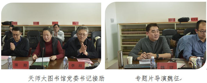 会议于2026年1月29日下午在天师大图书馆举行。会议由该馆党委书记接励主持并致辞。她表示,古籍保护志愿服务意义重大,天津师大在古籍编目志愿服务领域取得了令人欣喜的实践成果。专题片呈现了古籍保护文化志愿服务多年来的发展历程和志愿者们的坚守与奉献。随后,天师大魏征老师代表编导团队阐述了该片的创作背景和摄制意义,并通过历史脉络梳理与典型案例剖析,为与会者勾勒出影片的内容、框架、创作思路和发生在幕后的故事。